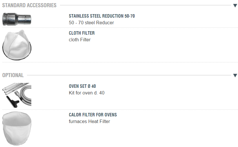 - Filters (optional) against thin dust or Hepa.