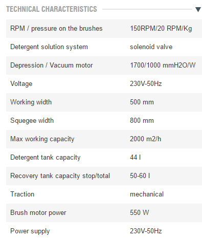 - The actuation of the solenoid valve is operated by the control lever, avoiding the outflow detergent solution when the brush is stopped during the interruptions of work.