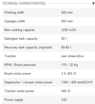 - Squeegee and brush plate mechanical and user friendly lifting lever: min. maintenance cost training time for the users.