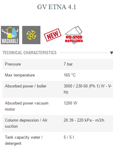 - Switch for using chemicals and detergents mixed with steam.